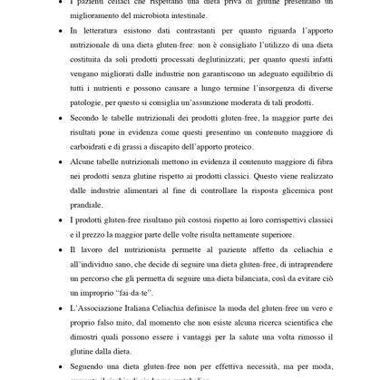 L'intervista è volta a comprendere il lavoro del Nutrizionista in questo ambito, sia per quanto riguarda il soggetto malato (il celiaco) sia per quanto riguarda il "non celiaco" ma fortemente convinto che una dieta senza glutine porti forti benefici. Causa la forte diffusione (soprattutto tra i personaggi famosi) che una dieta senza glutine sia l'elisir della salute, molte persone si catapultano in questo nuovo stile alimentare perdendo di vista i rischi che potrebbero incorrere escludendo a priori questa molecola senza il supporto di un professionista.